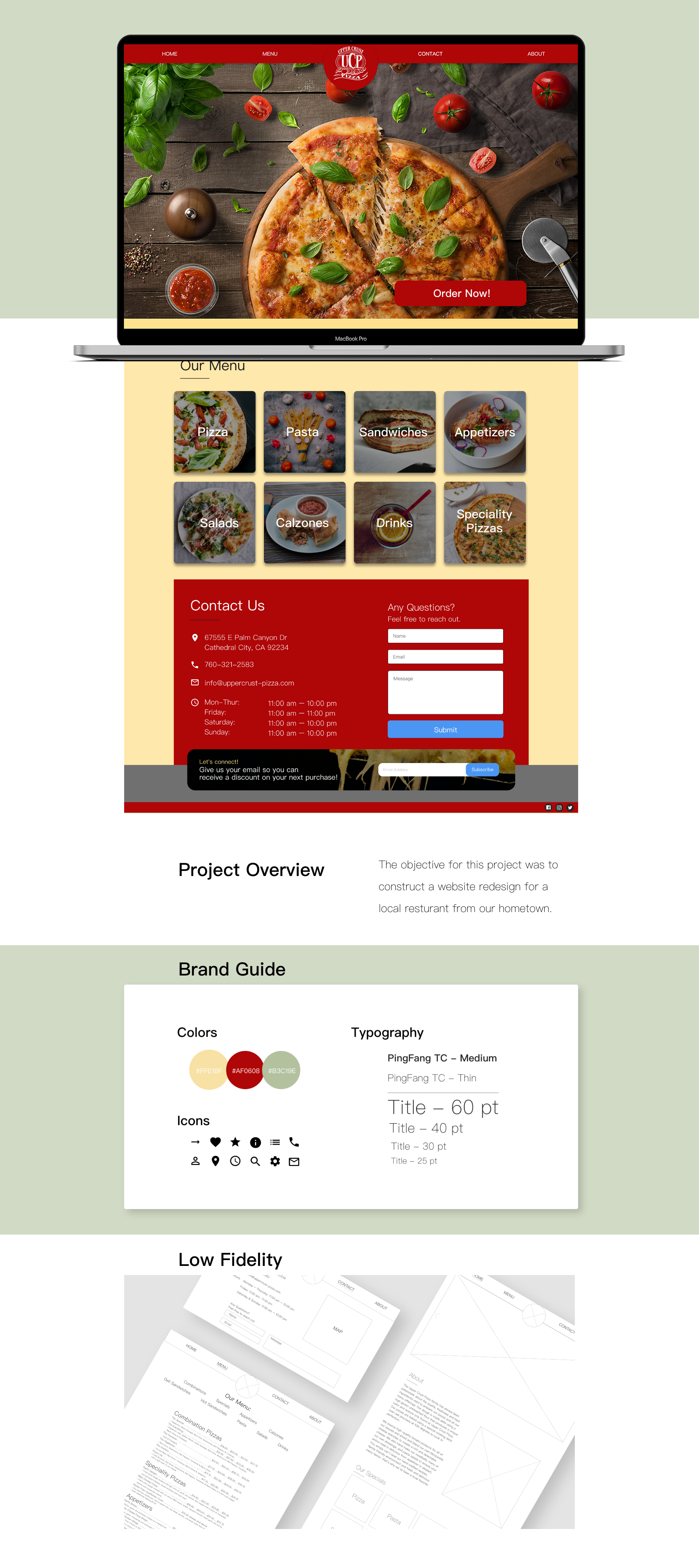 The objective was to create a pleasing website redesign for a restaurant that is in our home town.